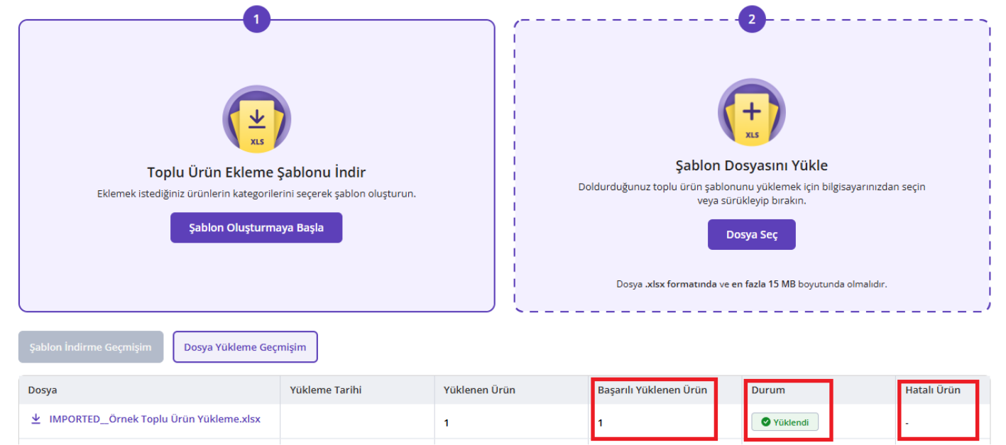 Excel ile ürünlerinizi toplu olarak yüklemek için aşağıdaki adımları takip etmeniz gerekmektedir.