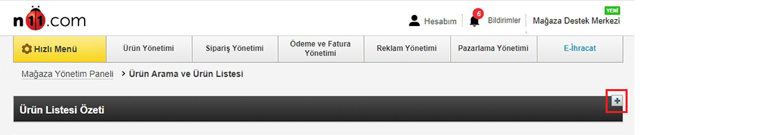 Açılan pencerede en üstte yer alan Ürün listesi özeti başlığının üstünde yer alan artı işaretine tıklayın.